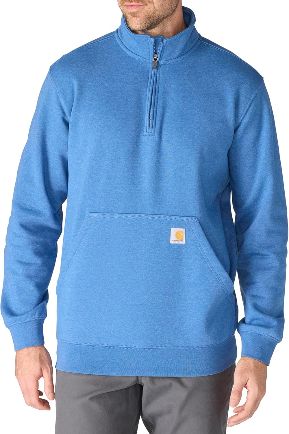 Fight the chill in this men's Carhartt quarter-zip sweatshirt. The midweight cotton blend and roomy loose fit keep you comfortable as you work. Handwarmer pockets and a zip-up collar add extra warmth when the breeze rolls in.