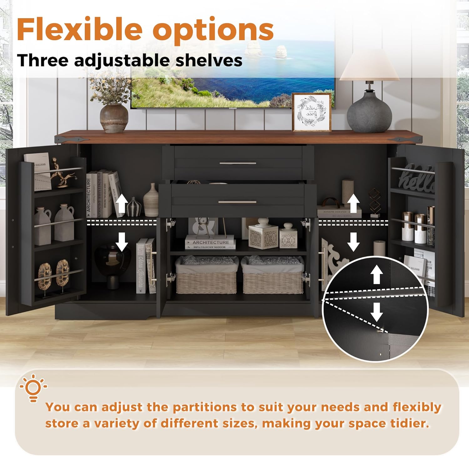 | Item Type Name | Adjustable Shelves, Door Rack, Kitchen Buffet, Large Sideboard Buffet Cabinet, Cabinet for Dishes, Black |