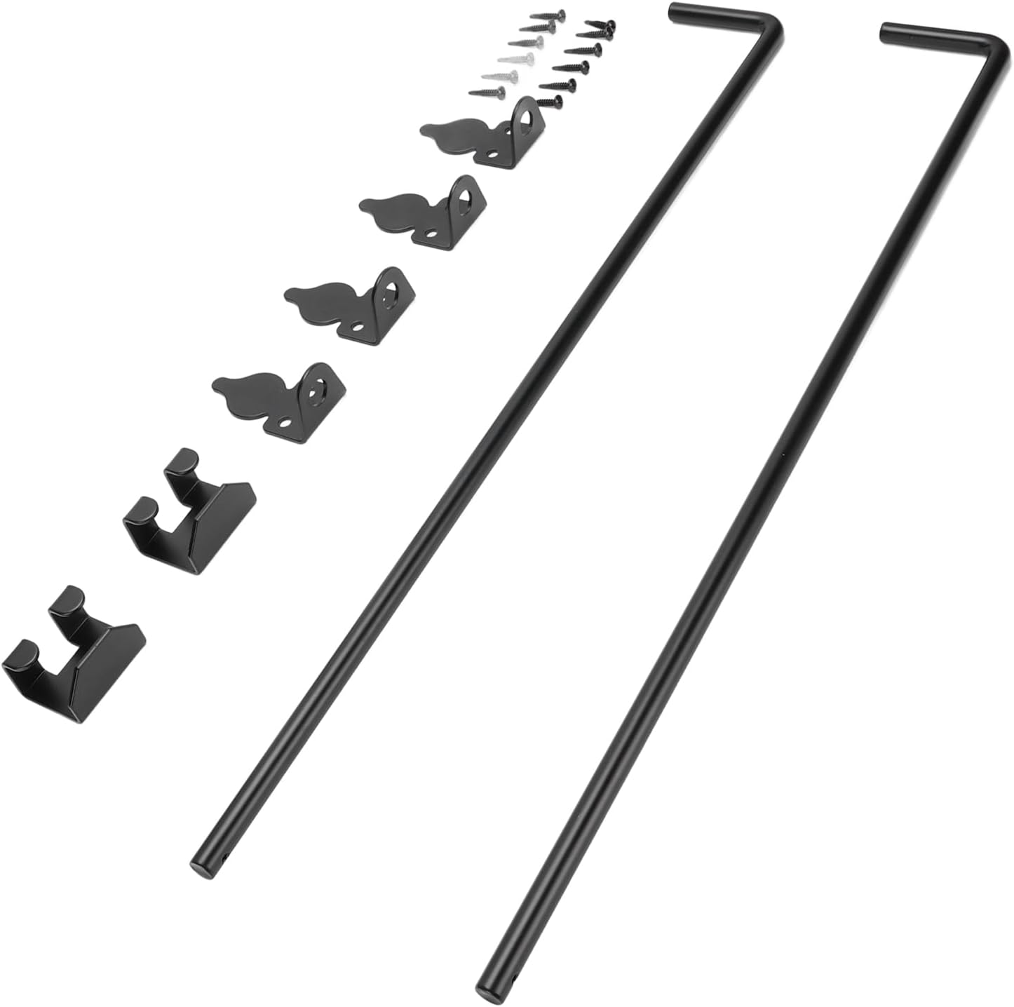 [Heavy Duty Security]Our groundlatch securely holds doors and gates open or closed, preventing wind or movement issues. [Versatile Application]Designed for heavy doors, our drop rod fits wooden, metal, and iron gates, for single or double door use. [Easy Install]Simply rotate and insert the rod into the ground with fixings included, ensuring stable positioning of your gates or fences. [Robust Steel Build]Made from thick alloy steel with rust- powder coating, ensuring durability against outdoor elements. [Size Compatibility]Measuring 24 inches with a 1/2 inch diameter, suitable for doors at least 1 1/2 inches thick, complete with installation instructions. Item Type: Door Drop Bar Kit Material: Alloy Steel Application: for Heavy Duty Doors, Gates, Fences, etc. Widely used for Wooden Fence Gates, Metal Gates, Iron Gates, etc. Suitable For Single Or Double Doors And Large Doors. Size: Diameter: Approx. 1/2in Length: Approx. 60.96cm / 24in Screw Length: Approx. 2.54cm / 1in 2 x Rods 6 x Fixing Brackets 12 x Screws 1 x Instruction Manual